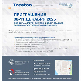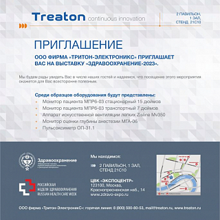 С 04 по 08 декабря 2023 г. компания «Тритон-ЭлектроникС» примет участие в Международном научно-практическом форуме «Российская неделя здравоохранения-2023» (далее – Форум), который пройдет на территории ЦВК «ЭКСПОЦЕНТР» (г. Москва).